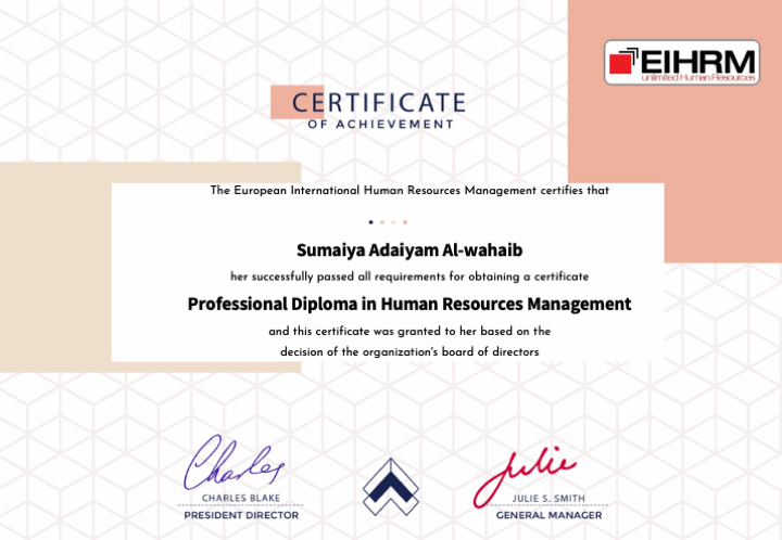 European Institute for Human Resources Management Uncategorized SumaiyaAdaiyam Al-wahaib